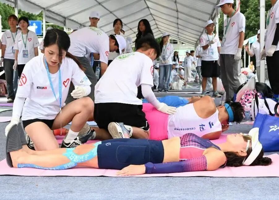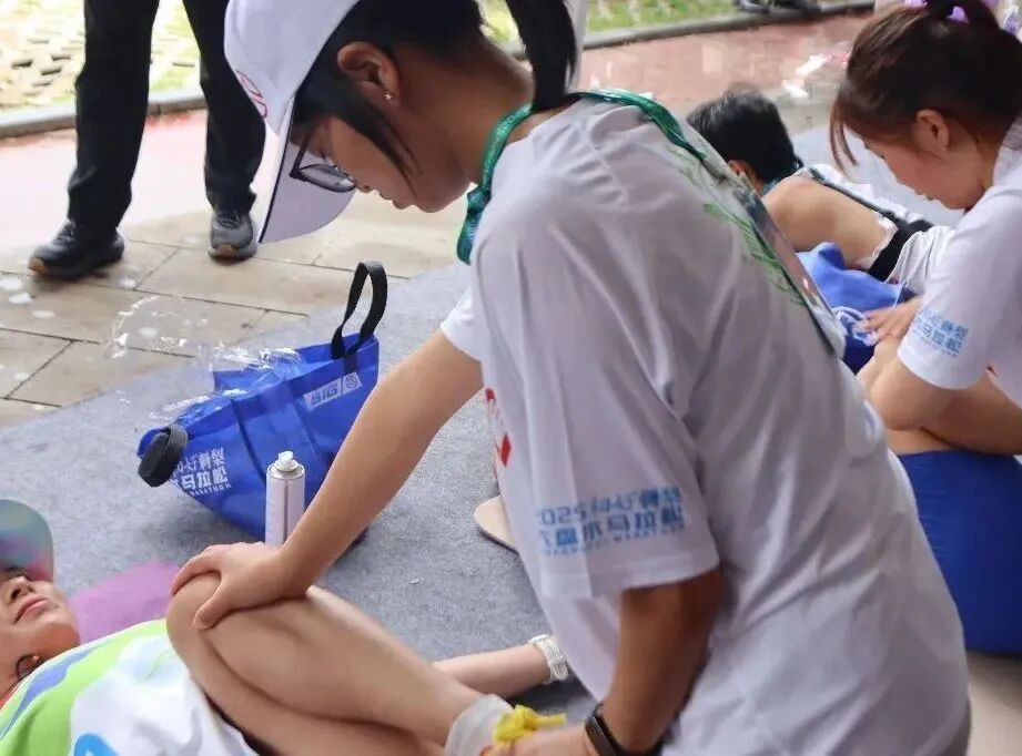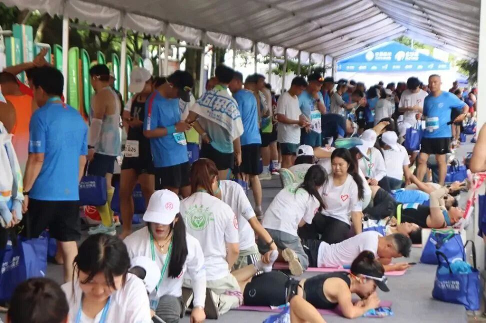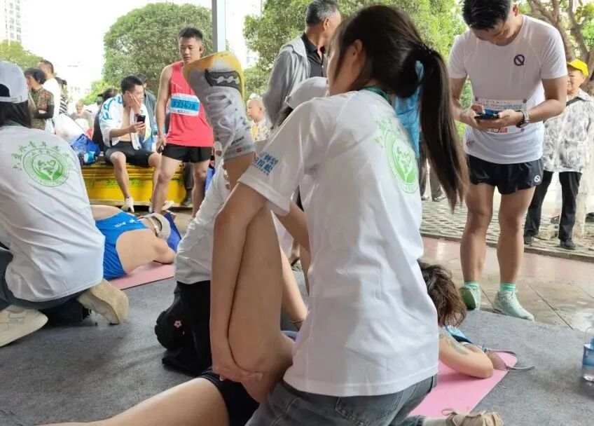 六盘水职业技术学院志愿者共956人。 这支规模庞大的专业队伍全力投入赛事医疗保障服务和赛后拉伸,为跑者安全保驾护航。